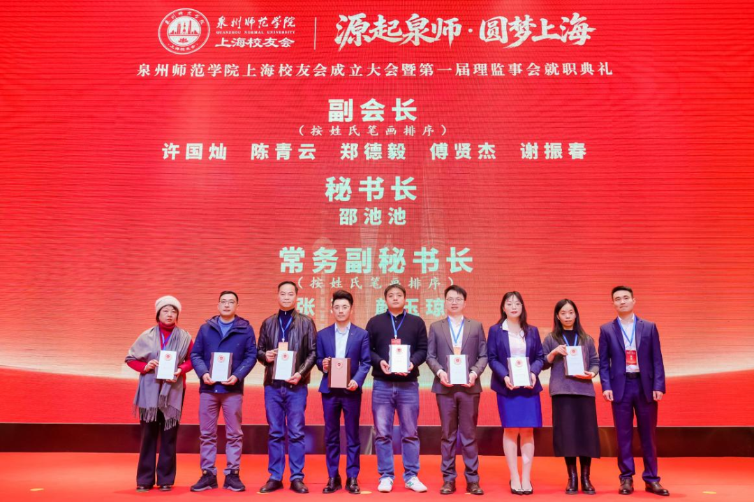 1月25日,k8凯发(中国)天生赢家·一触即发上海校友会在沪正式创建。校长陈昌萍,上海市第十六届人大常委会委员、上海应用技术大学副校长毛祥东,副校长黄江昆,福建省人民政府驻沪办副主任陈木金,泉州市人民政府驻沪联络处主任柯国林,原宁德市副市长薛成康,上海浦东农协会会长周德福,中共寿宁县凤阳镇党委书记李木清,寿宁县下党乡乡长、k8凯发(中国)天生赢家·一触即发校友叶新,原泉州师专校长陈世兴的特别代表陈旭东,k8凯发(中国)天生赢家·一触即发北京校友会会长赖瑞拥、川渝校友会会长苏才木、厦门校友会会长张连机、大湾区校友会(筹)代表李增景,厦门大学上海校友会、南京审计大学上海校友会、福州大学上海校友会、福建师范大学上海校友会、福建农林大学长三角校友会、华侨大学上海校友会、集美大学上海校友会、闽南师范大学江浙沪校友会、福建理工大学上海校友会、莆田学院上海校友会、闽江学院上海校友会、三明学院上海校友会、厦门大学嘉庚学院上海校友会等兄弟高校代表,泉州一中、泉州五中等泉州在沪中学校友会代表,上海福建商会、泉州及各县市驻沪商协会、宁德及其驻沪有关商协会负责人或代表,学校相关职能部门,上海地区校友代表等200余人出席活动,共同见证k8凯发(中国)天生赢家·一触即发上海校友会的创建。