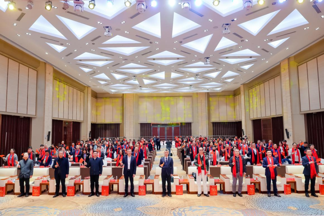 张金论为新当选副会长许国灿、陈青云、郑德毅、傅贤杰、谢振春,秘书长邵池池,常务副秘书长张玥、颜玉琼,副监事长杨佩斯、曾欣及出席大会部分理事授牌。