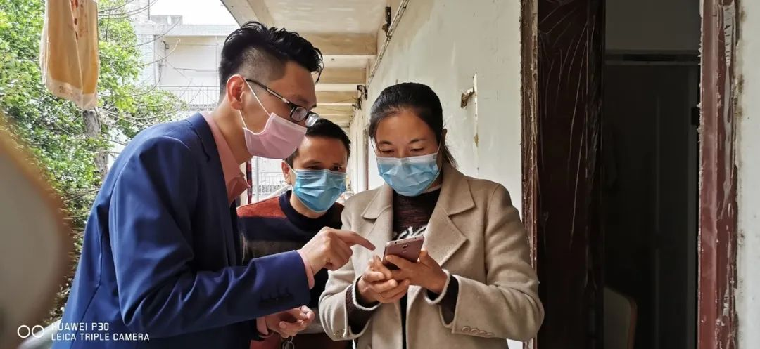 图为陈宗钰(左一)订婚后赶回工作岗位入户服务管理对象