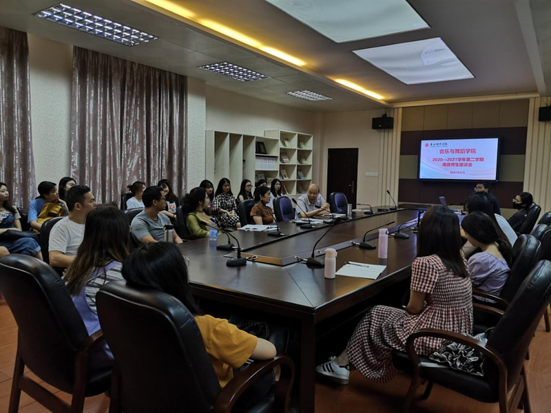 5月17日,我院在艺术楼C05召开2020—2021学年第二学期南音师生座谈会。院领导王丹丹、苏国柱、胡秋娇、陈恩慧、吴少静、南音系专业主任、南音系全体老师及45名本硕学生参加座谈会。
