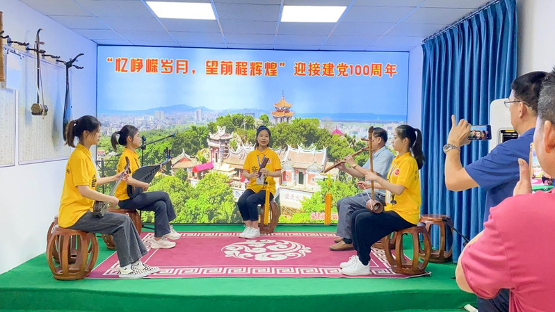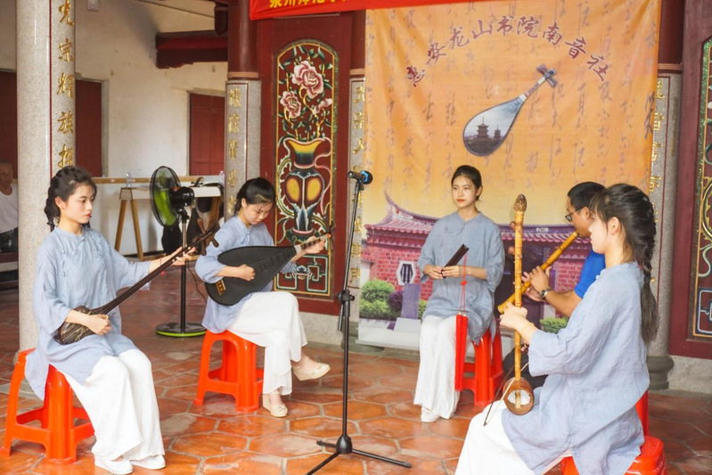 来自暑期社会实践队的南音系师生与龙山书院青少年南音社团的小朋友们共同展示了《梅花操》、《鱼沉雁杳》等南音经典曲目,得到了现场听众的一致好评。