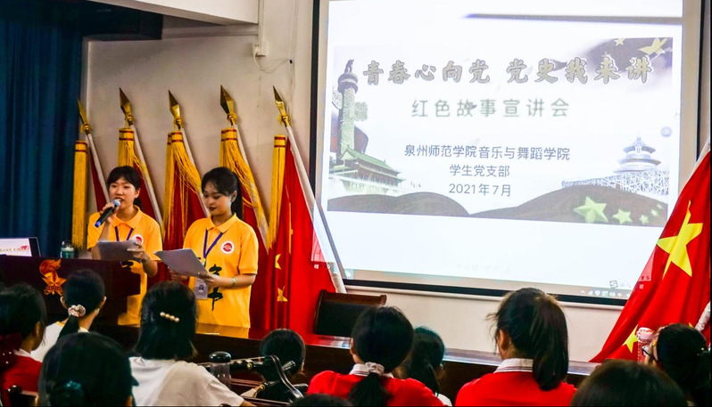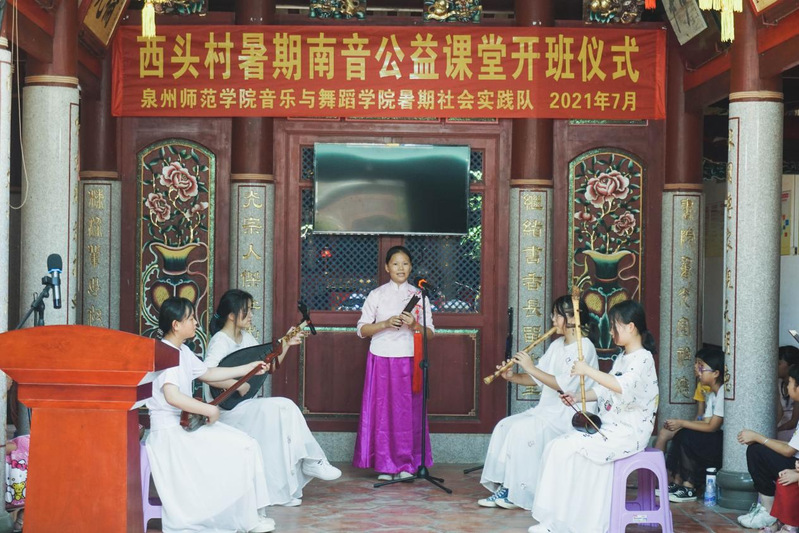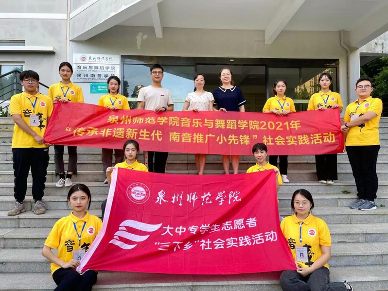 为引领学生在社会实践中受教育、长才干、作贡献,以实际行动投身乡村振兴战略实施,勇做担当民族复兴大任的时代新人,7月13日—7月18日,音乐与舞蹈学院“传承非遗新生代·南音推广小先锋”暑期社会实践队一行12人赴惠安县净峰镇西头村召开为期一周的社会实践活动,本次社会活动包含了南音公益课堂、南音社拜馆、南音公益快闪、环保宣传、校园安全宣传、党史宣传教育、汇报演出等丰富多彩的实践内容。