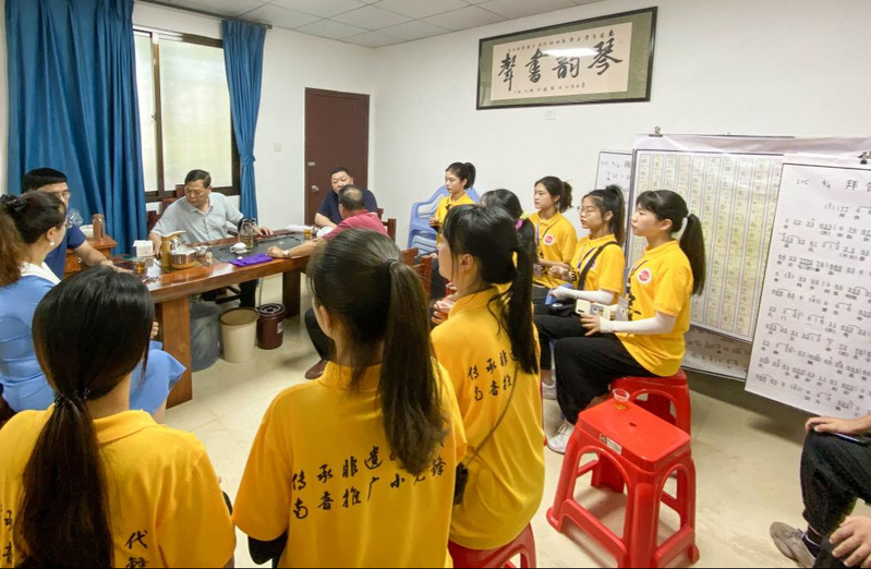 汇演结束后,王丹丹院长和实践队队员们一起座谈,肯定了队员们在本次社会实践中的辛苦付出和全心投入,和队员们一同总结了本次社会实践中的经验,并分析了实践中的不足,勉励队员们要不忘初心、继续加强自身专业技能学习,继续投身公益实践,在南音公益教学中进一步传承和推广南音,完成一名南音学子的神圣使命。