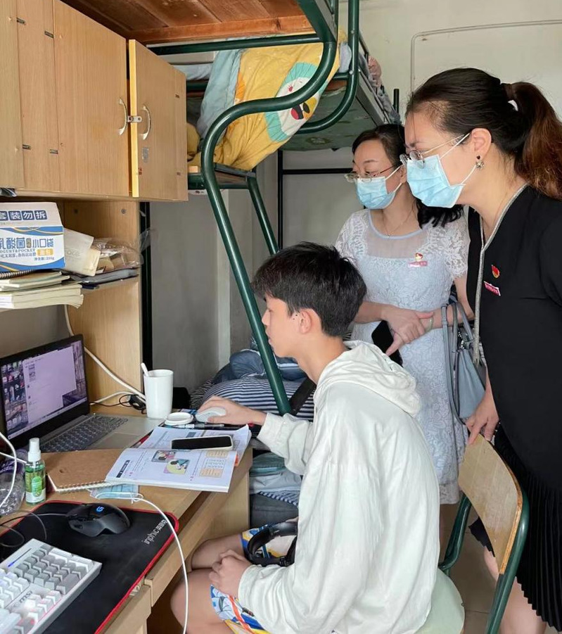 15日上午,学院领导带领各科室负责人、全体辅导员再次深入学生宿舍,分析学生线上上课情况,就学生线上学习遇到的相关问题予以现场解答,勉励同学们端正学习态度,保证线上学习效率。