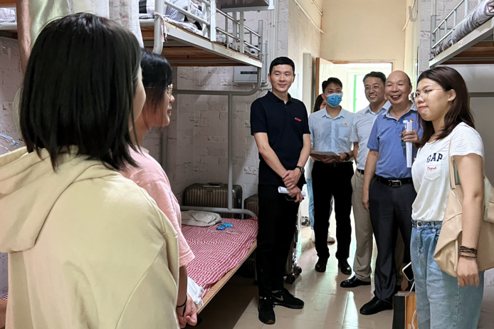 10月13日下午、15日上午,音乐与舞蹈学院党委书记苏国柱、院党委副书记兼纪委书记胡秋娇、副院长吴少静、副院长翁世晖、副院长陈恩慧带领院办、学工办负责人以及全体辅导员一同走访学生宿舍,看望慰问2021级新同学。