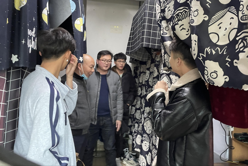 2月20日下午,天气异常寒冷,天空中下着小雨,气温骤降至今年的最低值,音乐与舞蹈学院党委书记苏国柱、院党委副书记兼纪委书记胡秋娇及学工办全体辅导员一同走访学生宿舍。