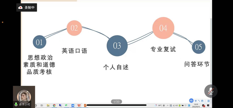 为进一步提高我院学生的考研热情,分析考研信息,掌握考研复习技巧,4月16日晚7点,音乐与舞蹈学院组织线上考研经验分享会。本次研讨会邀请音乐与舞蹈学院2018级8名准研究生分享了自己的考研经验。音乐与舞蹈学院学工办主任刘晓莹、辅导员张甲玉、李祖阳参加了本次会议。