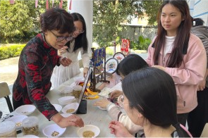 糖画摊位前,金黄的麦芽糖浆勾勒出蝴蝶、福字等寓意吉祥的图案,吸引了众多学生驻足观看。在陈学珍老师的耐心指导下,学生们亲手执勺,将温热的糖浆缓缓倾倒在石板上,绘制出属于自己的糖画作品。