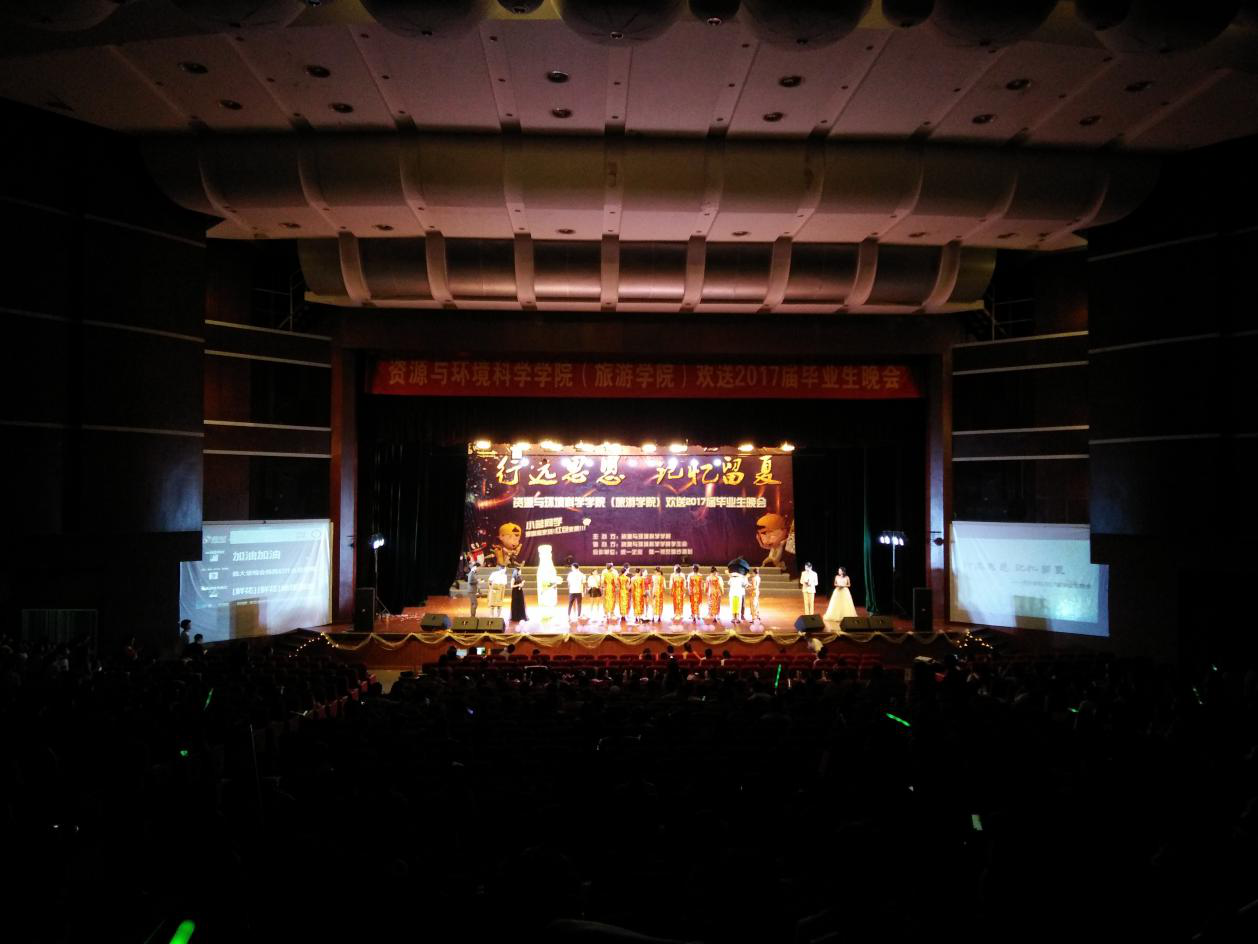 14日晚7点,资环学院在陈祖昌大礼堂举办主题为“行远思恩,记忆留夏”的2017届毕业生晚会。学院党委书记黄联国、常务副院长李子蓉、教务科副科长曹满、地理专业副主任康伟锋、学生科副科长刘洪漪等领导莅临晚会现场,学院周泳博士、潘伟安老师、孙境蔚老师及辅导员李金荣、蔡菲蓝、郑龙云到场与学院全体学生一同观看晚会。