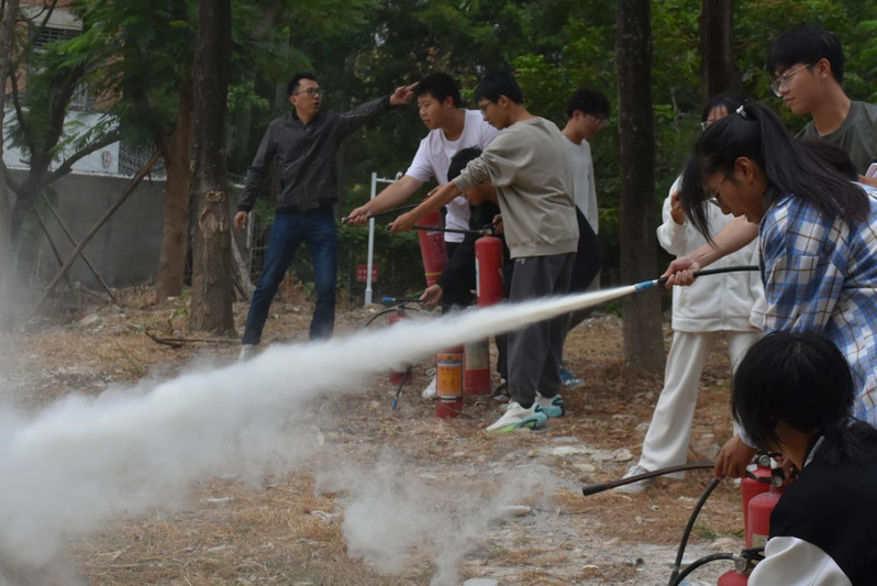 整个演练过程主要由消防常识讲解、消防器材使用方法介绍和灭火演练三个部分组成。讲解员第一时间讲解了消防安全知识、介绍常见的消防灭火设备,并亲身示范了灭火器的使用方法。随后,同学们依次进行实战练习,行动果断,操作规范,快速掌握灭火器的正确使用方法。