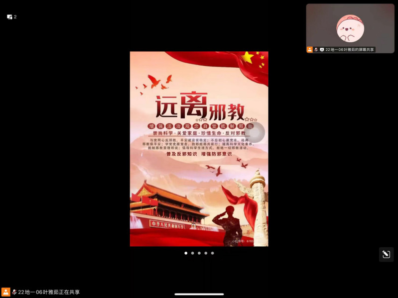 为增强我院学生识别邪教、抵制邪教的能力,营造安全和谐的校园环境,5月25日晚,资源与环境科学学院召开反邪教警示教育活动。学院以线上+线下相结合形式,确保毕业季反邪教教育“不断线”,守护学子顺利踏上人生新征程。