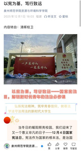 2025年12月4日是第十二个国家宪法日,且迎来第八个“宪法宣传周”活动。为深入学习贯彻落实习近平法治思想,有助于宪法深入人心,资环学院以此为契机,自12月1日起组织召开了形式多样、内容扎实的宪法宣传系列活动,引导师生在沉浸式法治文化体验中感悟宪法力量。