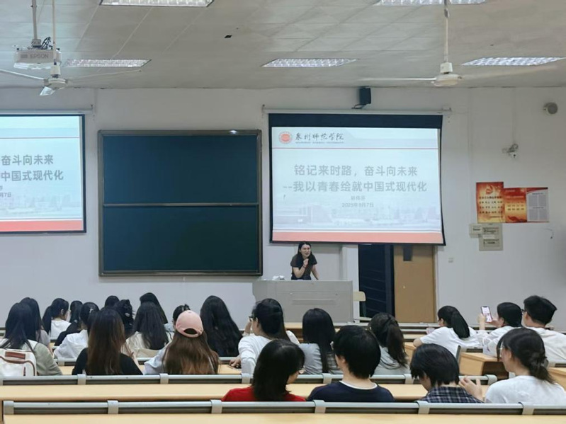 辅导员林伟芬召开“铭记来时路,奋斗向未来——我以青春绘就中国式现代化”专题宣讲。宣讲中,林伟芬以“来时路”为脉络,回溯中国式现代化的探索历程,从革命时期青年投身民族解放运动,到建设时期青年扎根戈壁荒漠搞建设,再到新时代青年在科技攻关、生态保护一线勇挑重担,顺利获得“历史纵贯线+时代横截面”的叙事方式,让学生深刻认识到“中国式现代化不是轻轻松松、敲锣打鼓就能实现的,需要青年拿出‘初生牛犊不怕虎’的闯劲与‘敢教日月换新天’的干劲”。
